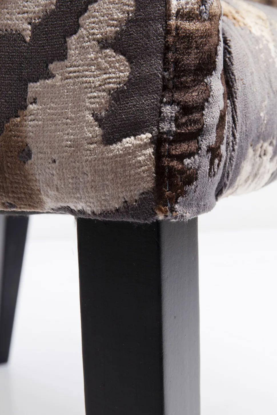 - Der spektakuläre Bezug in Gold- und Brauntönen und die schlanken schwarzen Beine machen den Look