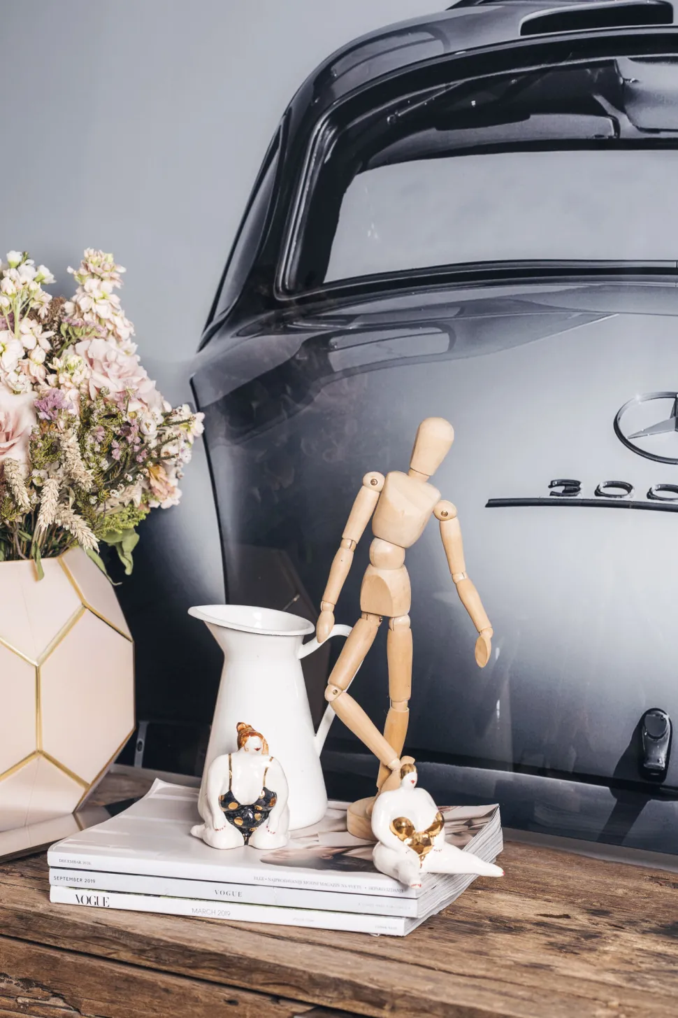 - Sepia-graues Fotomotiv Mercedes 300 SL hinter ESG Sicherheitsglas