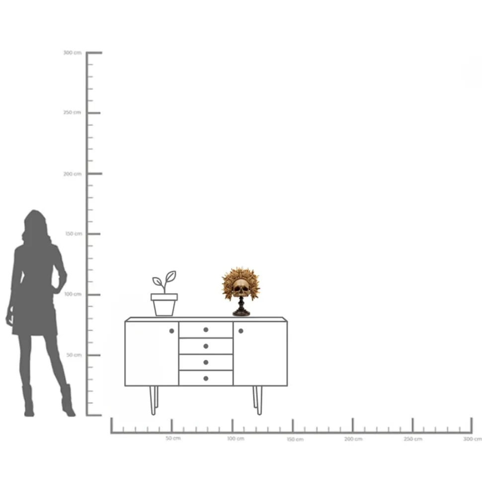 - Aus der Wunderkammer: Totenkopf-Skulptur in antiker Aufmachung mit aufwändigem, goldenen Kopfschmuck