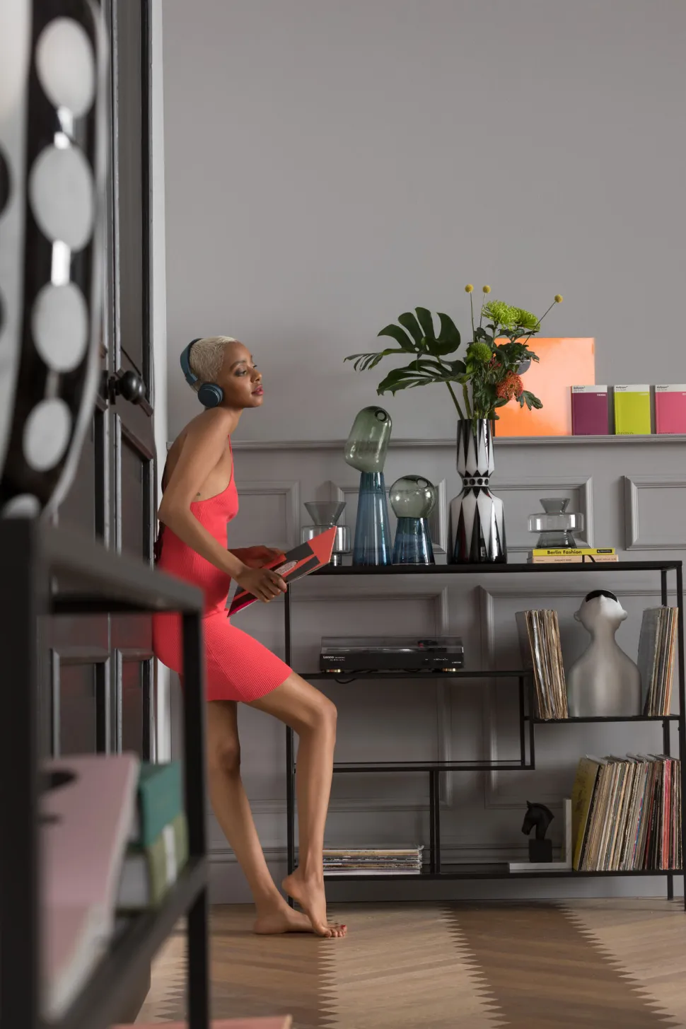 - Passt sich mit seinem reduzierten Look jedem Wohnstil an und kann auch frei im Raum stehen