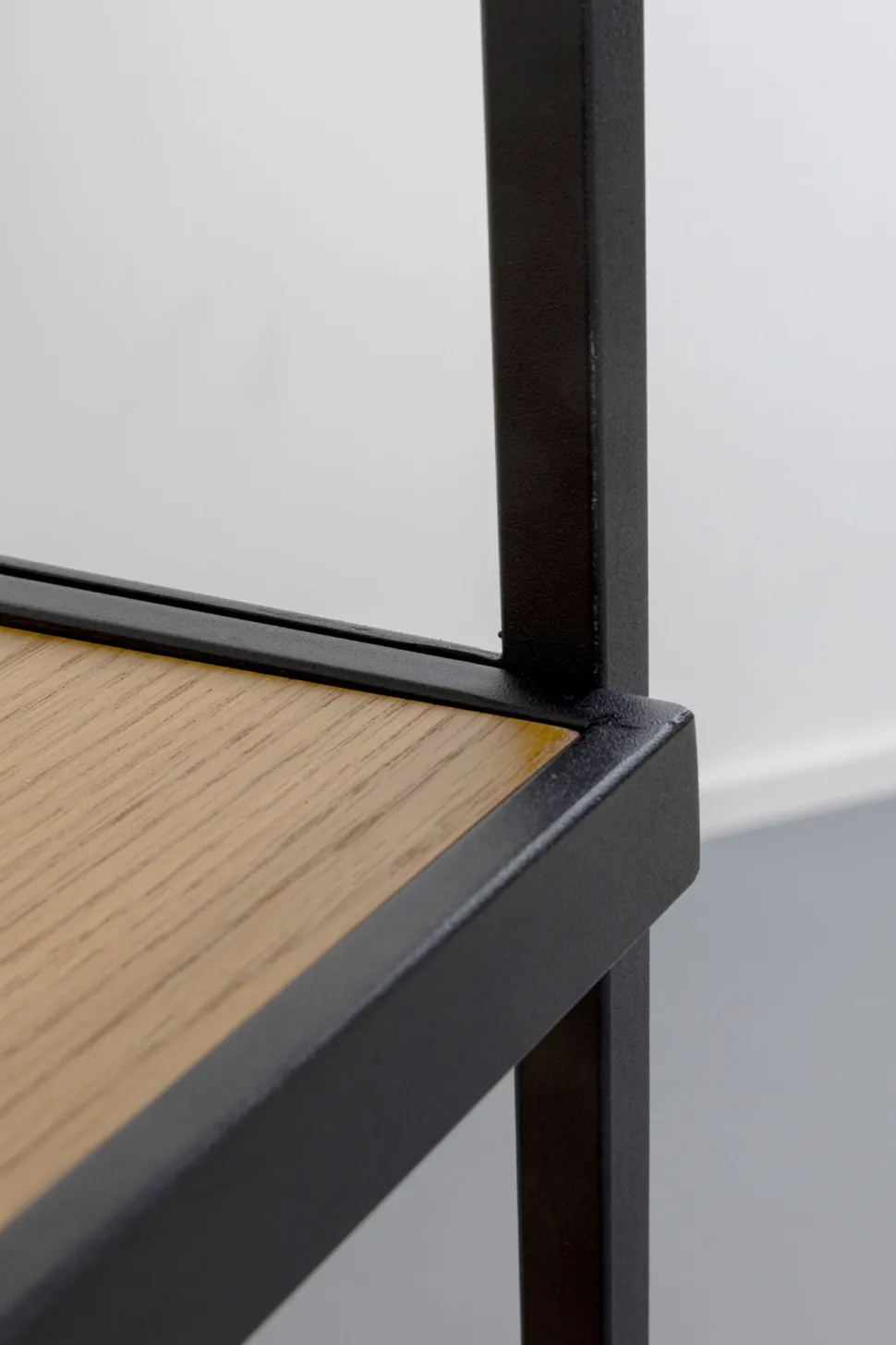 - Die Fachböden mit Eiche-Furnierholz verleihen dem Regal Wärme und Wohnlichkeit