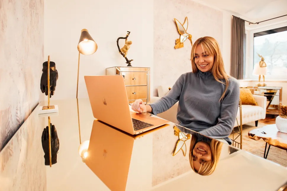 - Wenn schon Homeoffice, dann richtig schick! Ob als Arbeitsplatz für Kreative oder als Laptoptisch, um Rechnungen zu überweisen – Luxury glänzt mit Design