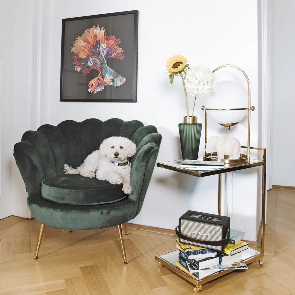 - Seelenschmeichler: Das natürliche, dunkle Grün, Gold und die runden Formen sorgen für ein harmonisches Wohngefühl