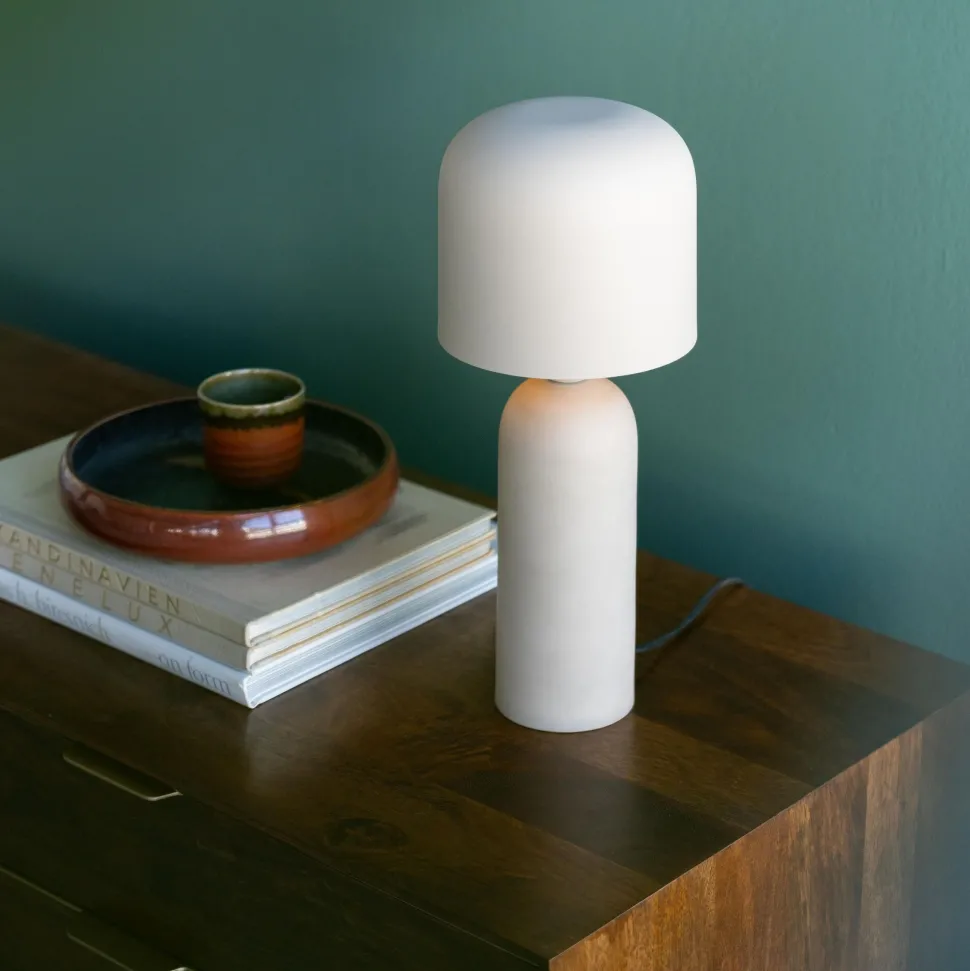 - Mittelgroße Tischlampe aus Metall in Beige-Creme, 39 x 15.5 x 15.5 Zentimeter (H/B/T)