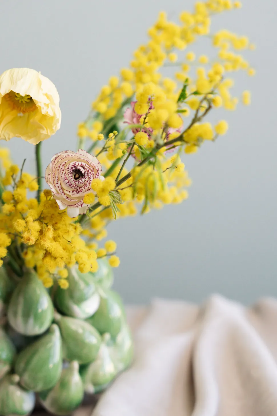 - Die Blumenvase im mediterranen Stil ist ummantelt von Feigen