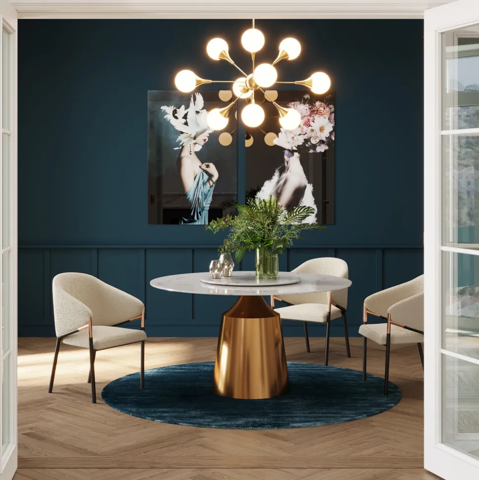 - Elegant geformter Esstisch-Stuhl mit Bezug in Bouclé-Optik