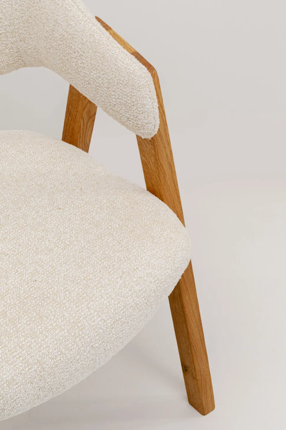 - Moderner Armlehnstuhl in Weiß mit Bouclé-Bezug, 79.5 x 55 x 55 Zentimeter (H/B/T)