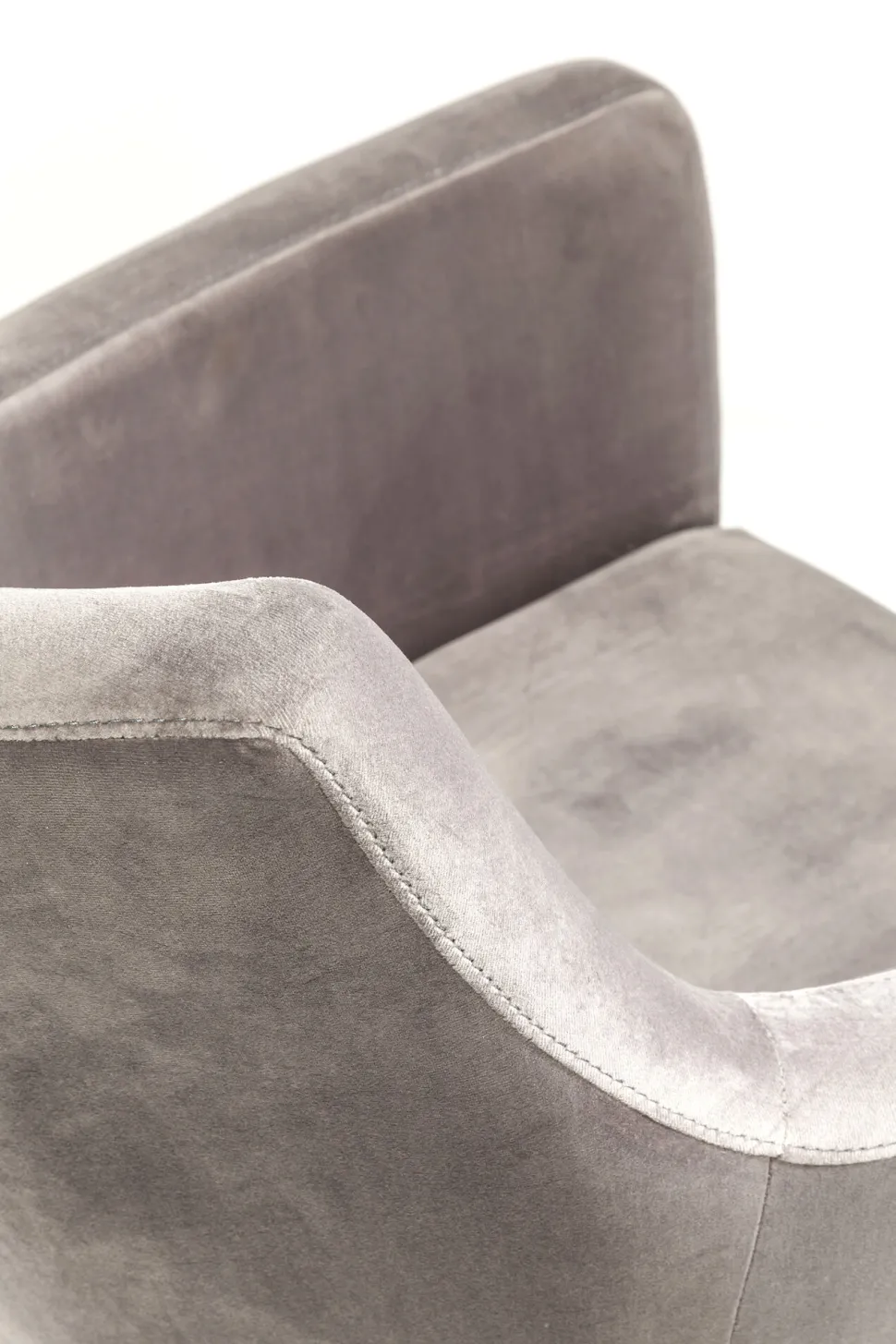 - Komfortabler, grauer Polsterstuhl in schimmernder Samt-Optik mit Armlehnen sowie braun lackierten Beinen aus massivem Buchenholz