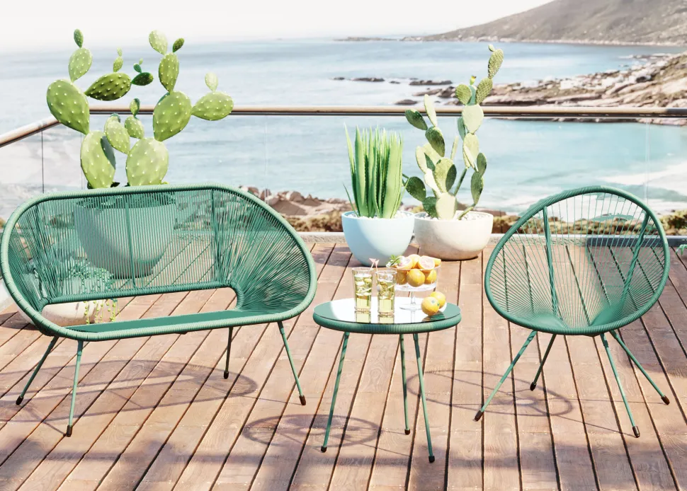 - Kombiniert mit weiteren Acapulco-Sesseln, in verschiedensten Farben erhältlich, lassen sich einzigartige Outdoor-Oasen für jeden Wohnstil kreieren