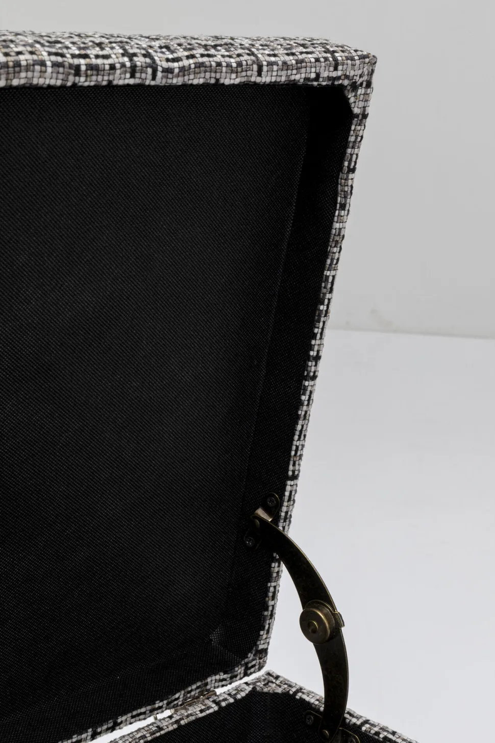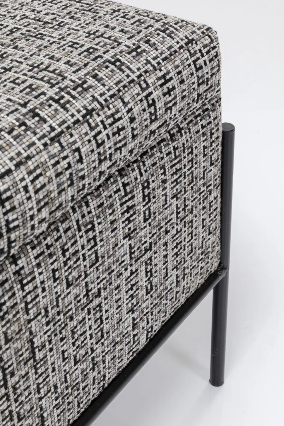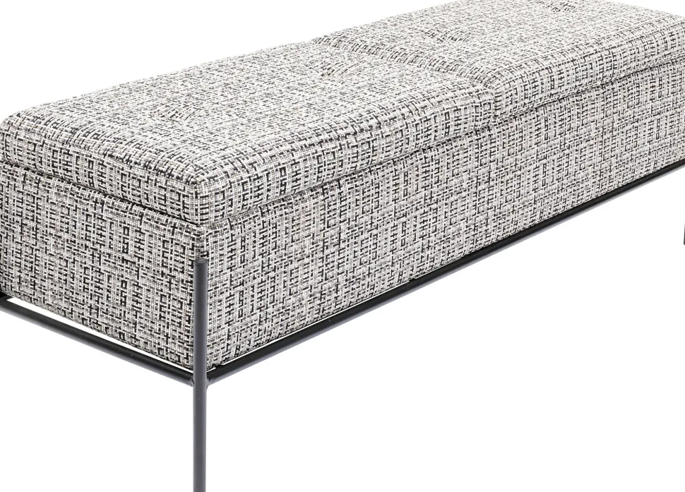 - Edle Designer Bank mit Strukturstoff in Schwarz, Weiß und Grau und filigranem Stahl Gestell