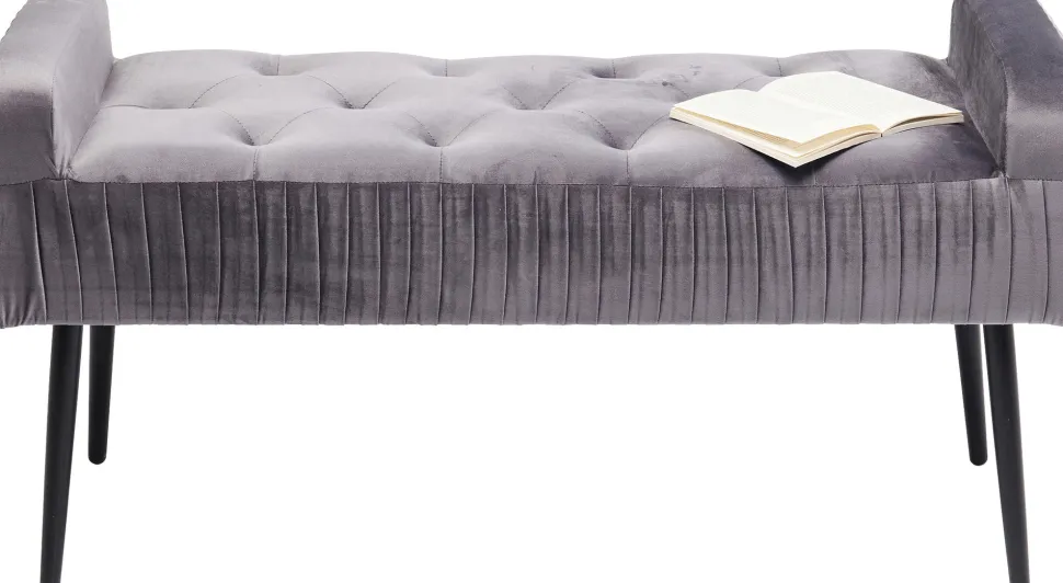 - Die stylische Samt-Polsterbank in Grau macht sich gut im Flur, im Ankleidebereich oder vor dem Bett im Gästezimmer