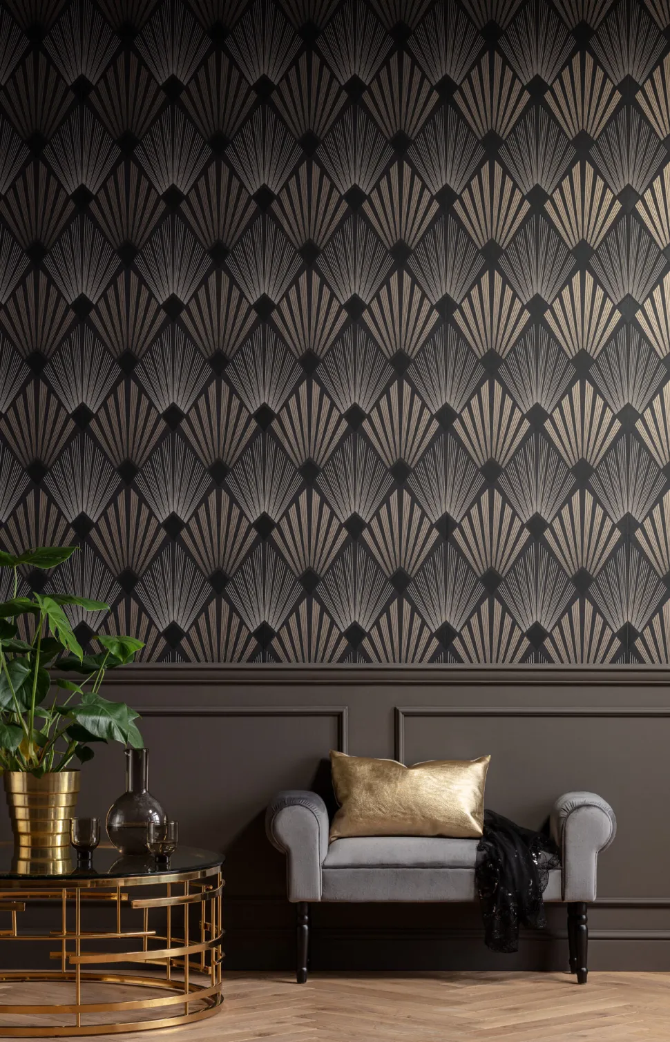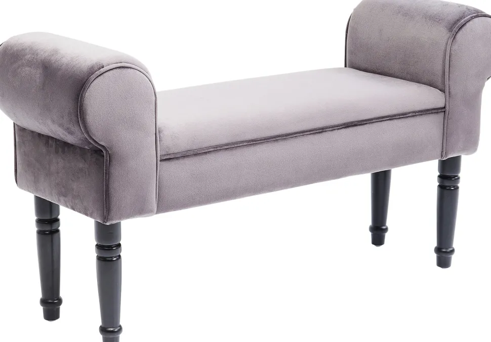 - Kleine gepolsterte Sitzbank mit grauem Bezug in Samtoptik – ein praktisches kleines Möbelstück für alle Fälle