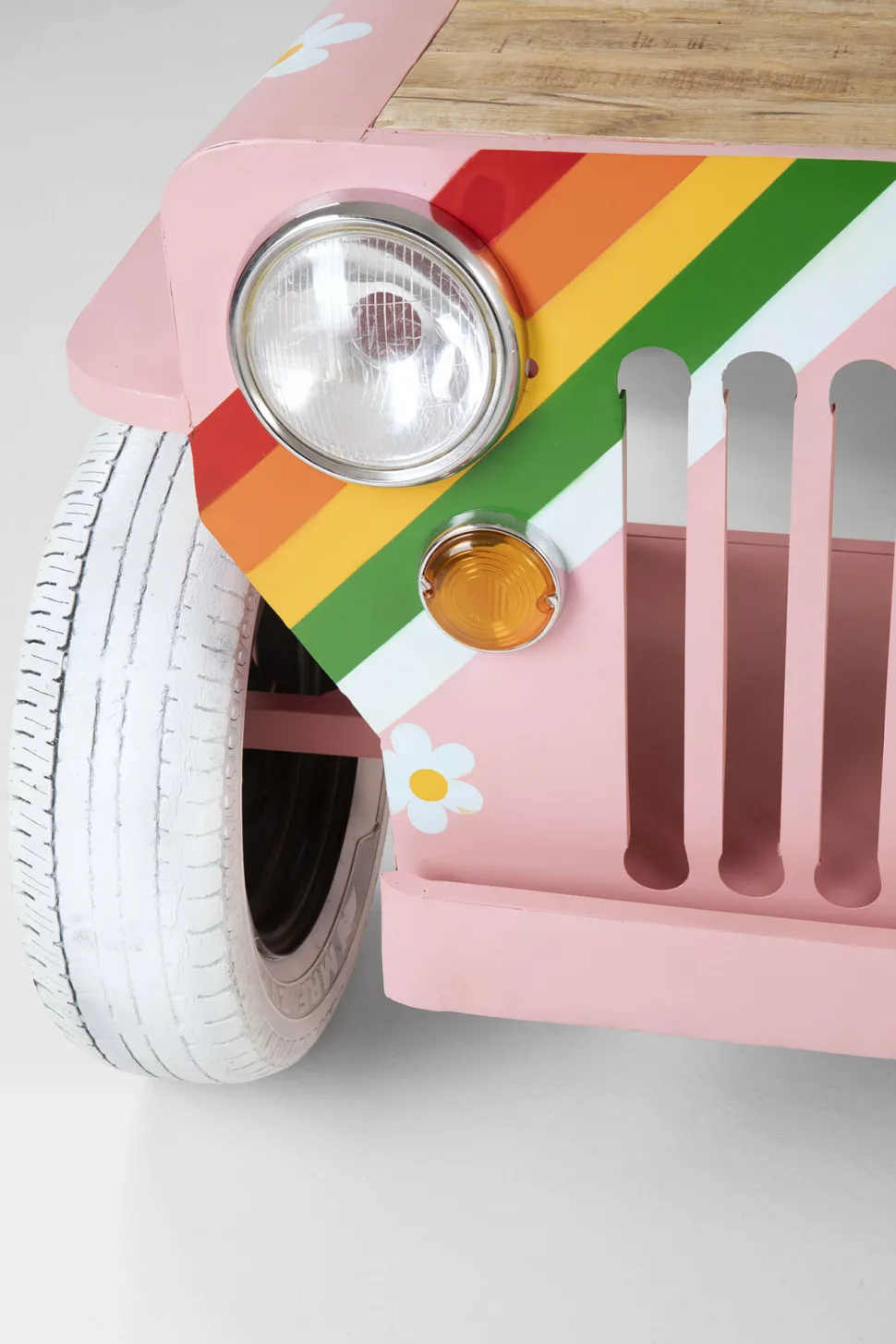 - Pinkfarbener Barwagen mit vielen Funktionen, 104 x 241 x 119 Zentimeter (H/B/T)