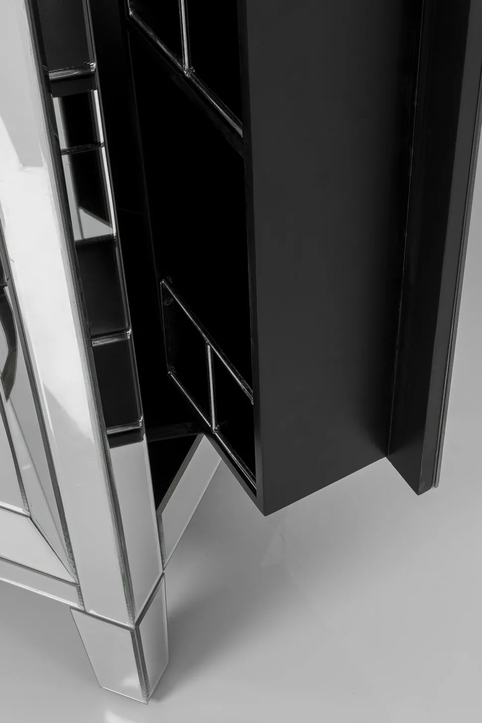- Barschrank der absoluten Luxusklasse mit verspiegelten Fronten und Seitenteilen, edlem Facettenschliff, Glasknauf