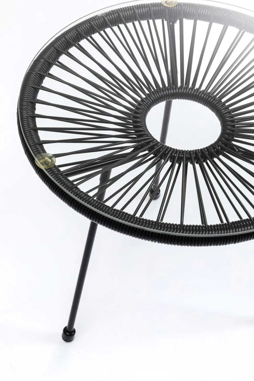 - Schwarzer, runder Beistelltisch mit Glasplatte im Acapulco-Design für drinnen und draußen