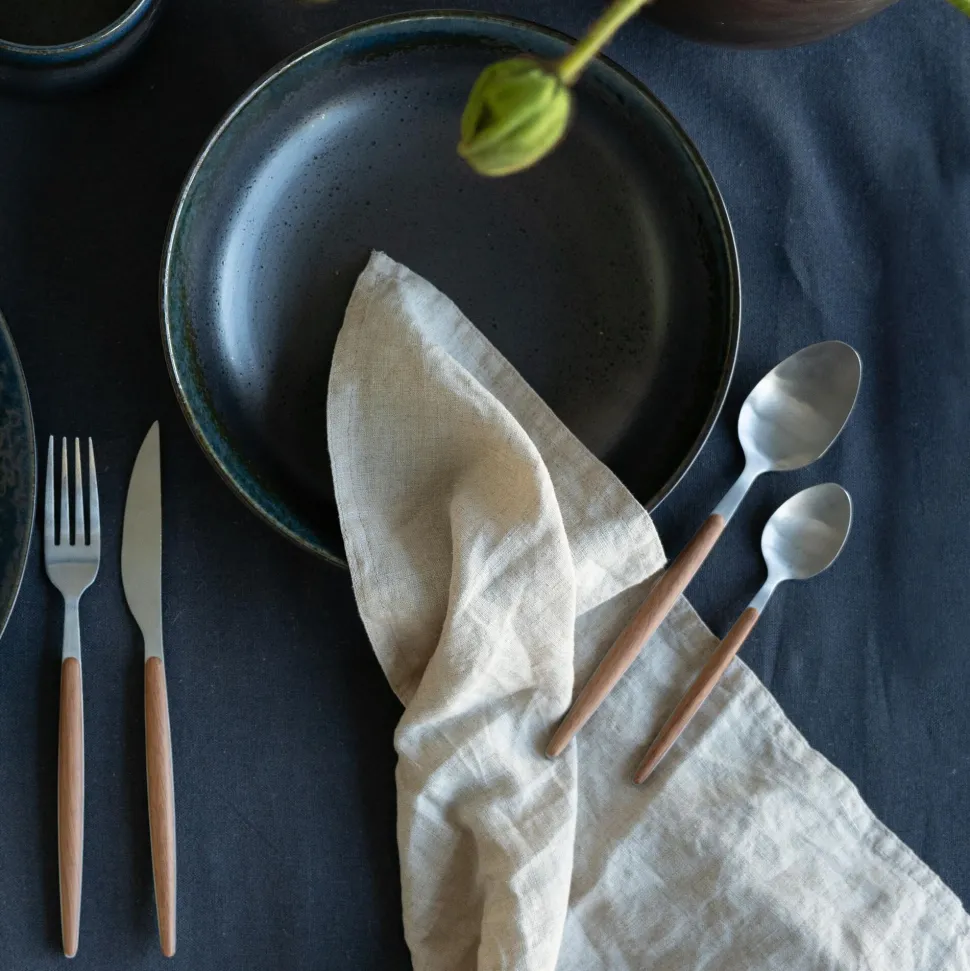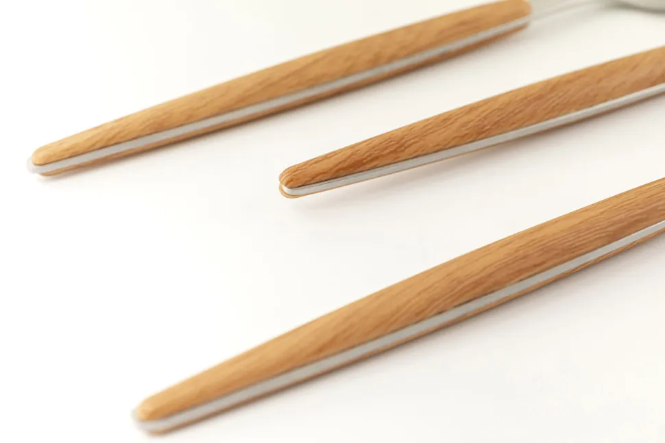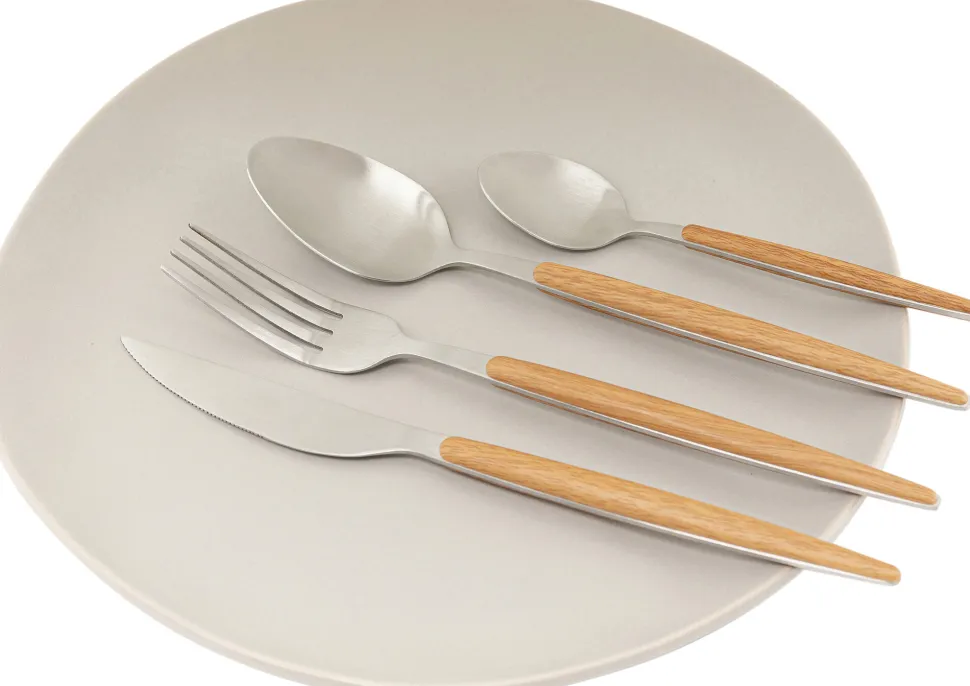 - Modernes, 16-teiliges Besteck-Set silberfarben mit Griffen in Holzoptik