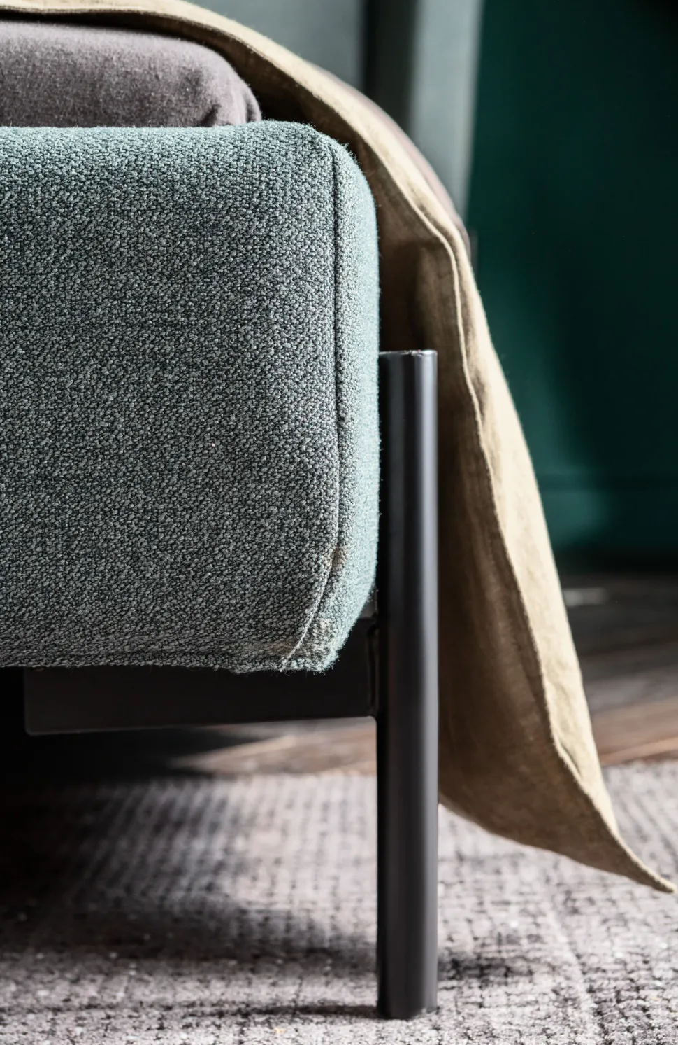 - Leichtfüßige Beine aus schwarz lackiertem Stahl