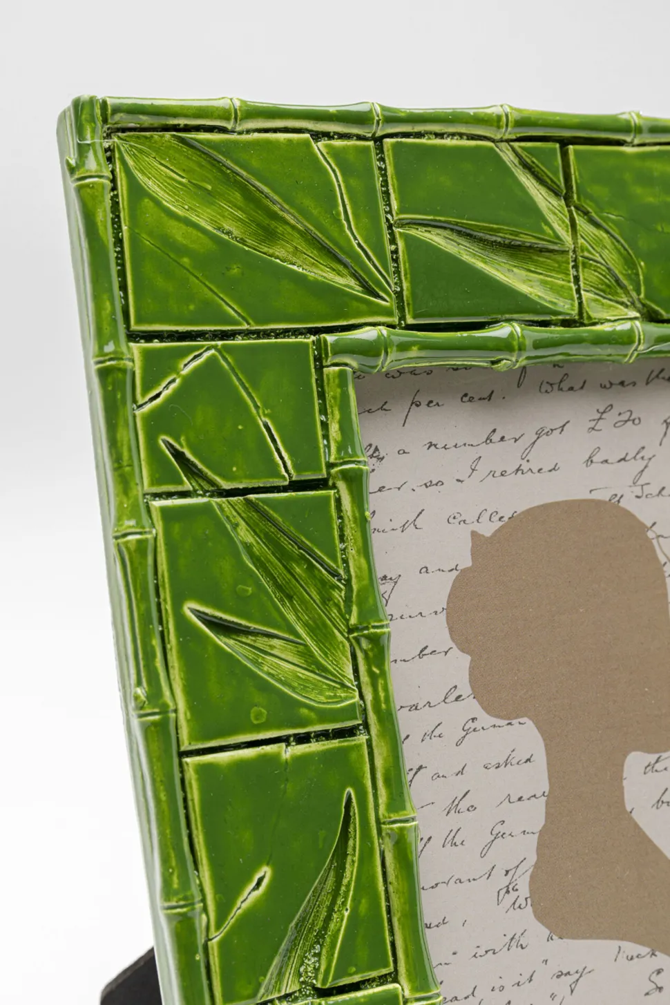 - Der Rahmen in sattem Grün begeistert mit tropischen Bambus-Elementen und glänzendem Finish
