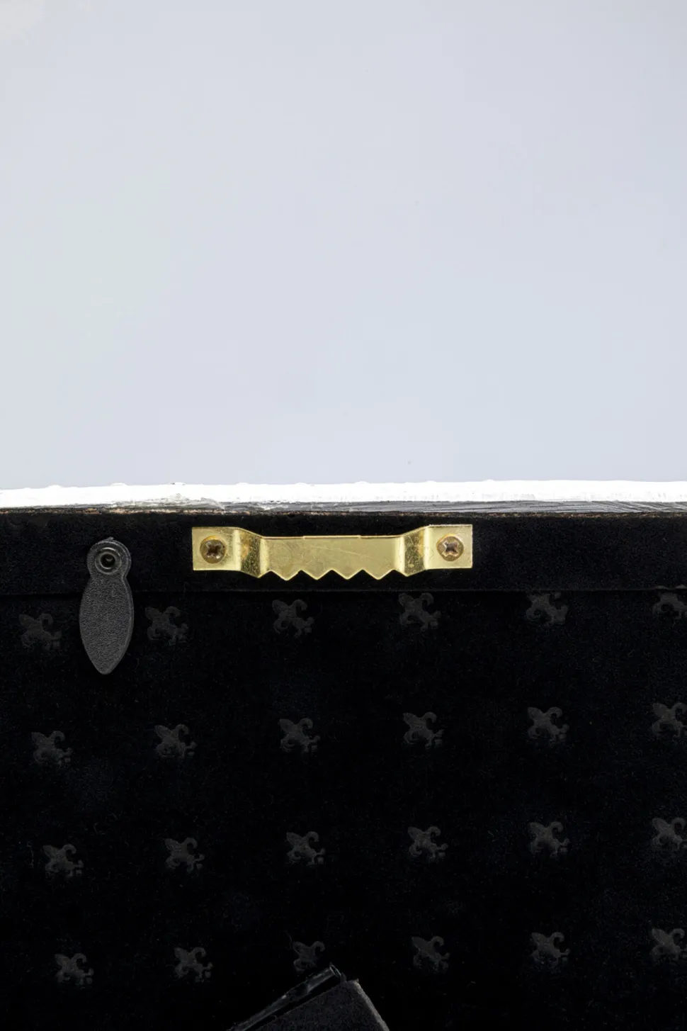 - Die geometrische Musterung in zeitlosem Schwarz-Weiß schafft eine dynamische Optik