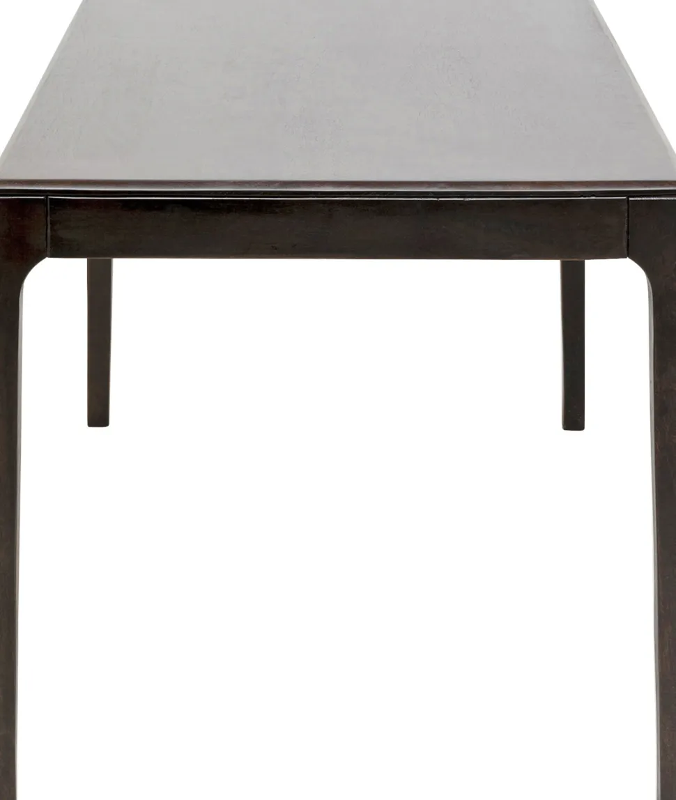 - Rechteckiger Tisch aus hochwertigem, gebeizt-lackiertem Massivholz in der Farbe Walnuss für vier bis sechs Personen