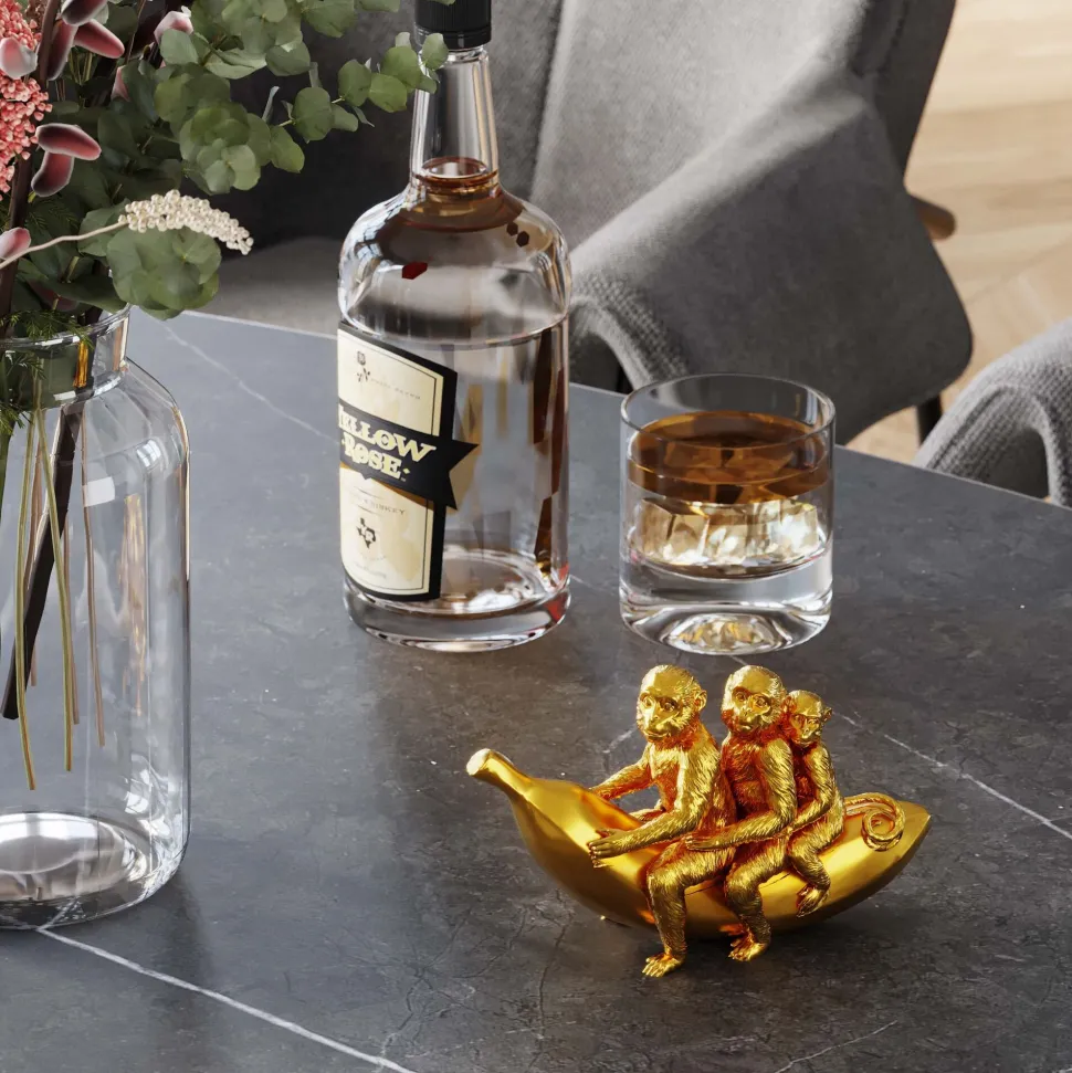 - Kleine Dekofigur Äffchen in Gold, 12 x 20 x 7 Zentimeter (H/B/T)
