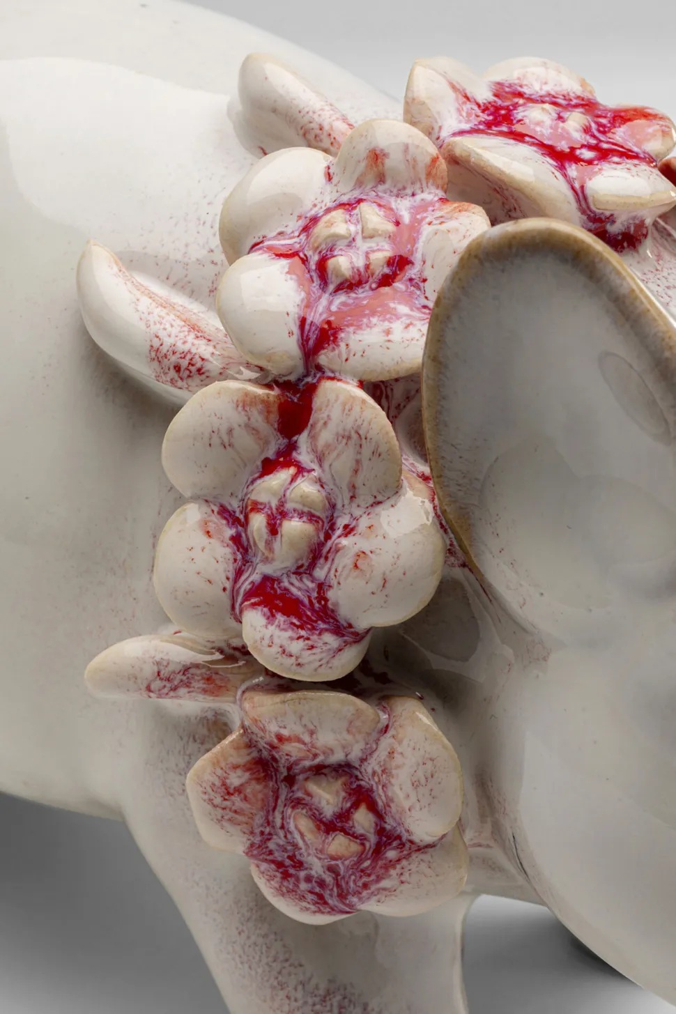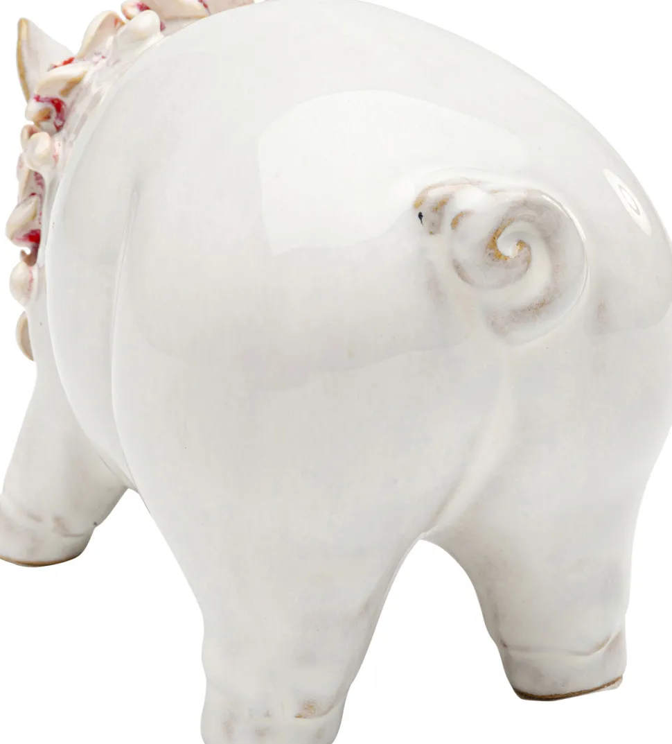 - Das niedliche Schwein mit einer Blumenkette in zartem Rosa ist ein fröhlicher Hingucker auf Sideboards und Regalen