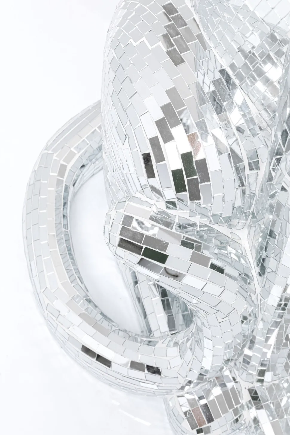 - Die silberne Raubkatze bringt mit ihrer Oberfläche aus Spiegelmosaik Glamour ins Wohnzimmer