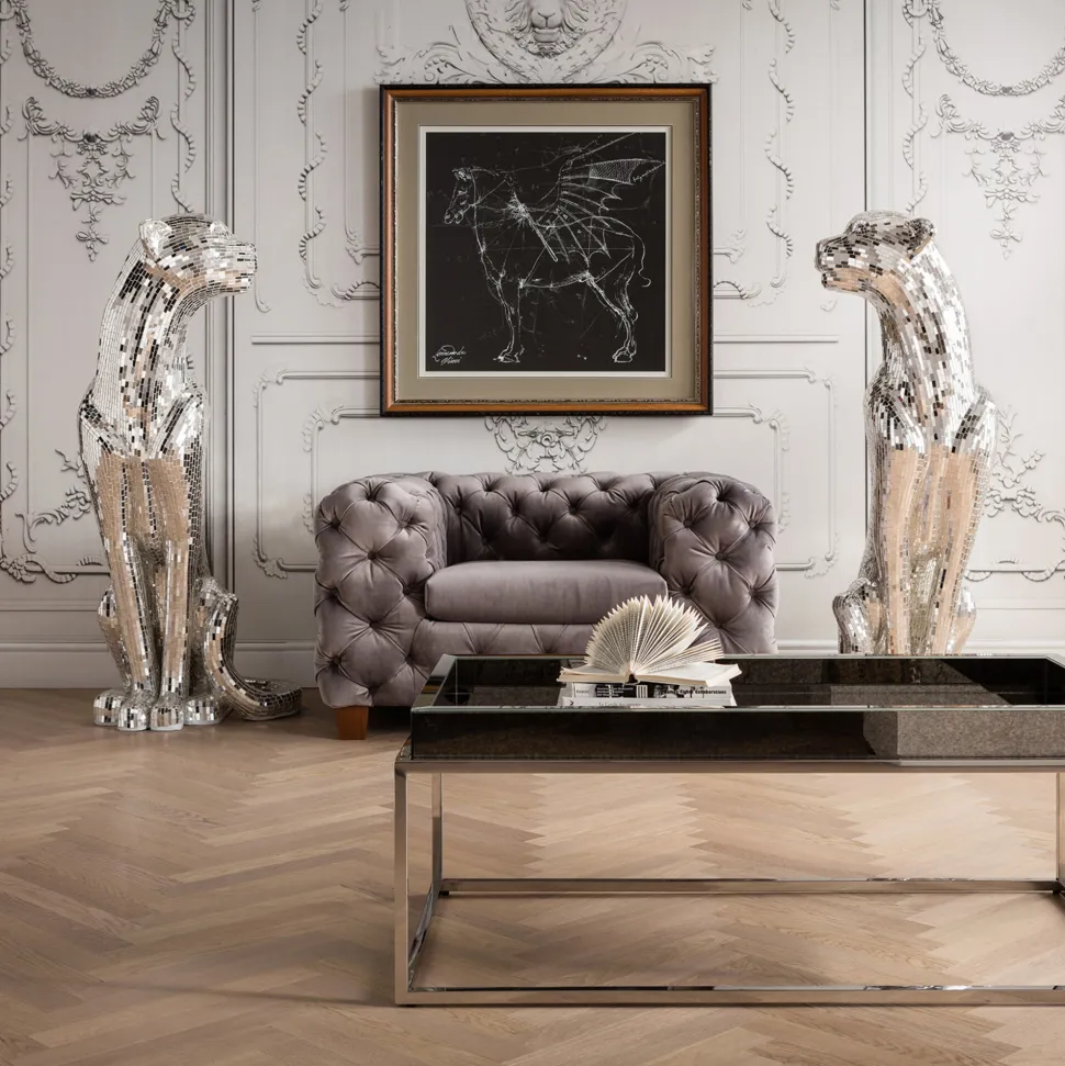 - Die glamouröse Pantherfigur begeistert mit aufwändiger Mosaiktechnik in aus verspiegeltem Glas