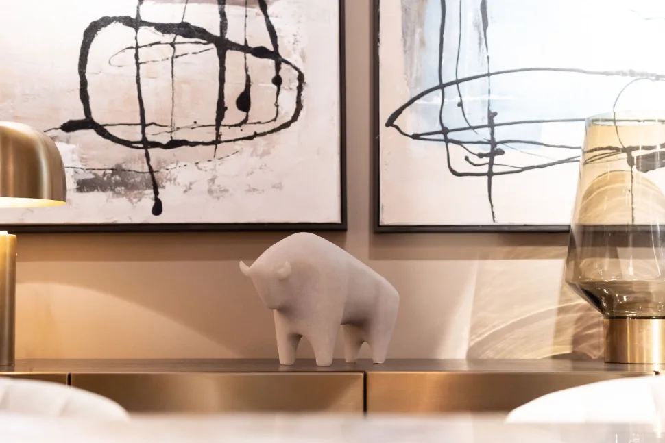 - Die skulpturale Form dieses Stieres verleiht jedem Raum eine moderne Ästhetik