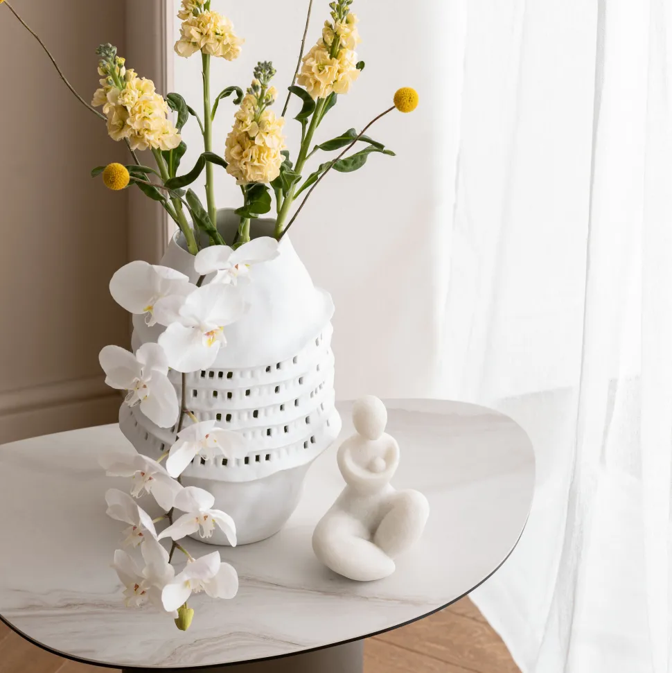 - Weiße Dekofigur in Sandstein-Optik, 21.8 x 15.2 x 11.4 Zentimeter (H/B/T)