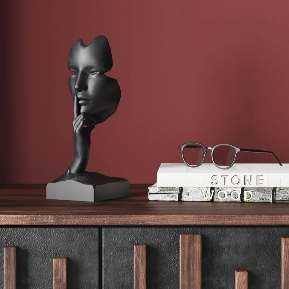 - Die Dekofigur spielt mit dem Motiv einer Maske