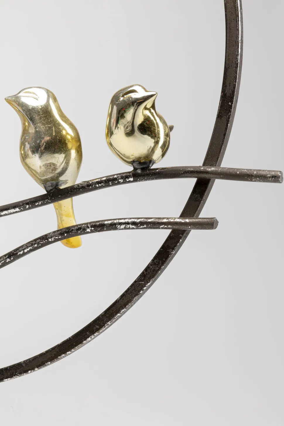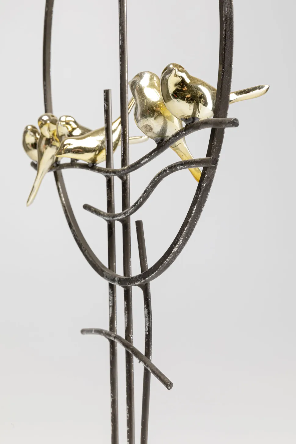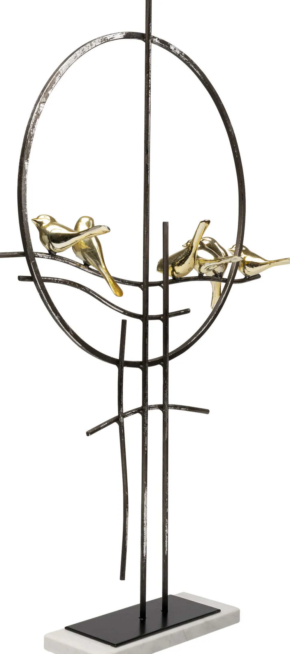 - Abstraktes Deko-Objekt in Schwarz mit sechs goldigen Vogelfiguren auf einem Sockel aus echtem Marmor