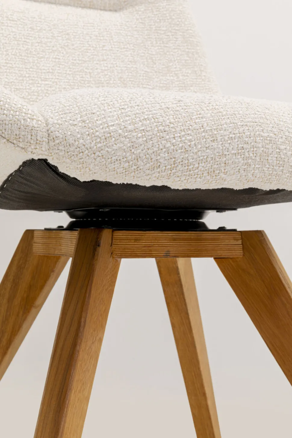 - Der moderne Bouclé-Bezug in zartem Creme harmoniert perfekt mit den Beinen aus massivem Eichenholz