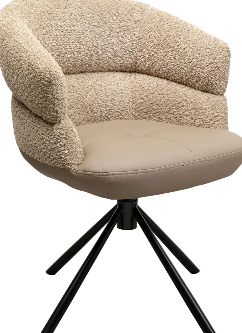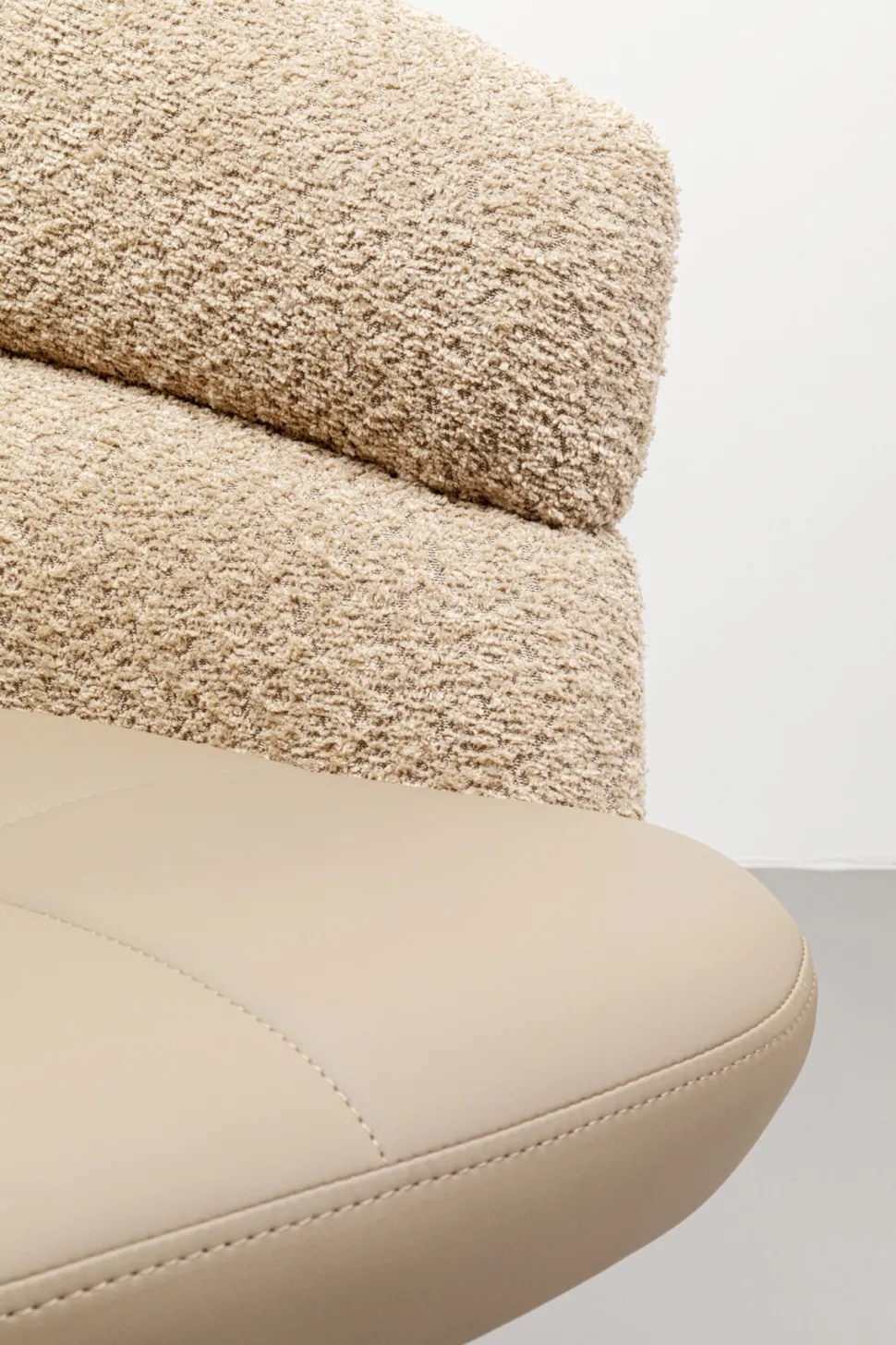 - Der Mix aus weichem Bouclé und der Sitzfläche in Leder-Optik schafft eine harmonische und moderne Ästhetik