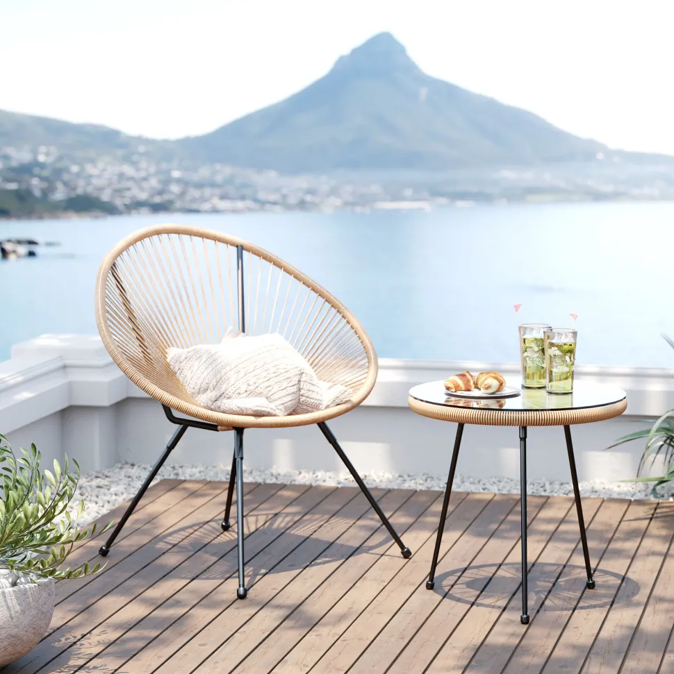 - Set bestehend aus Garten-Sessel und Beistelltisch in Natur für Balkon und Terrasse
