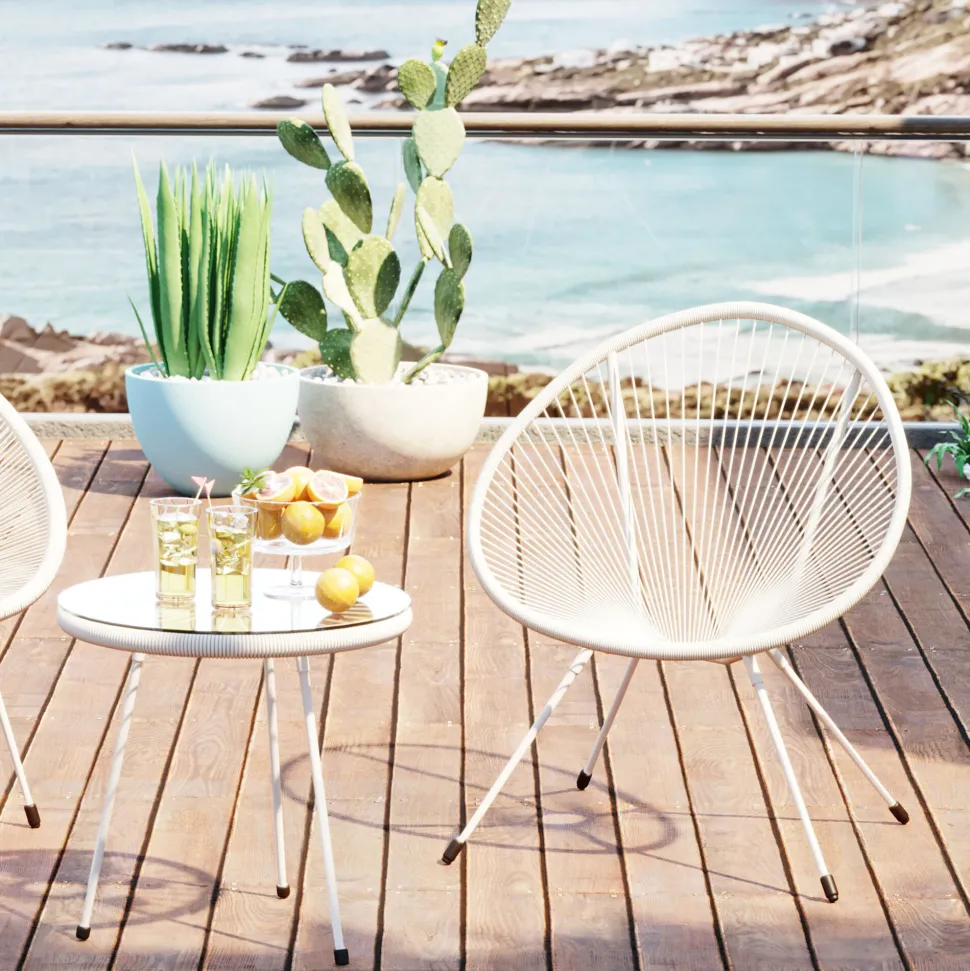 - Set bestehend aus Garten-Sessel und Beistelltisch in Weiß für Balkon und Terrasse