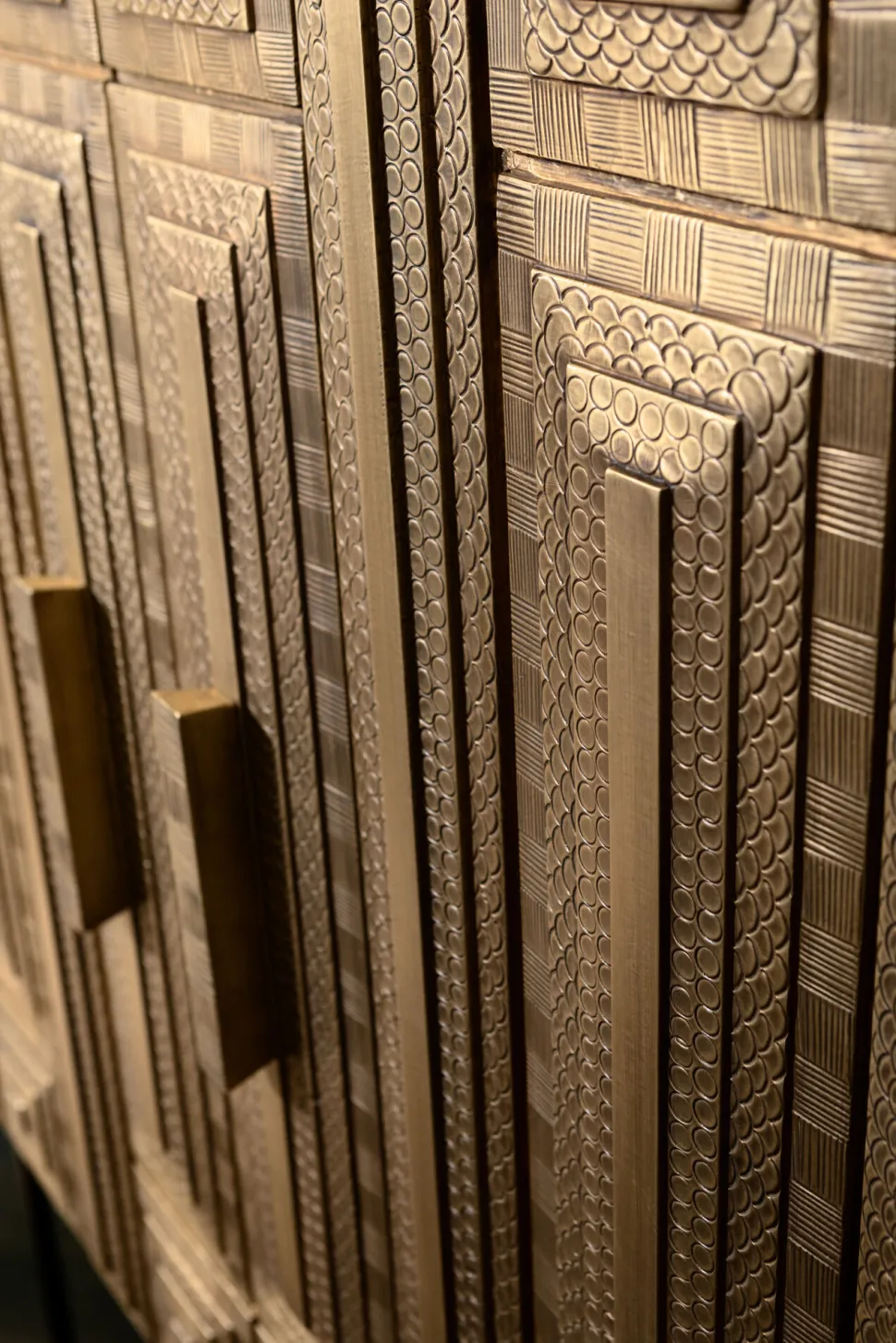 - Spektakulärer Hochschrank mit kunstvoller, reich mit Ornamenten verzierter Front – Kunsthandwerk auf höchstem Niveau