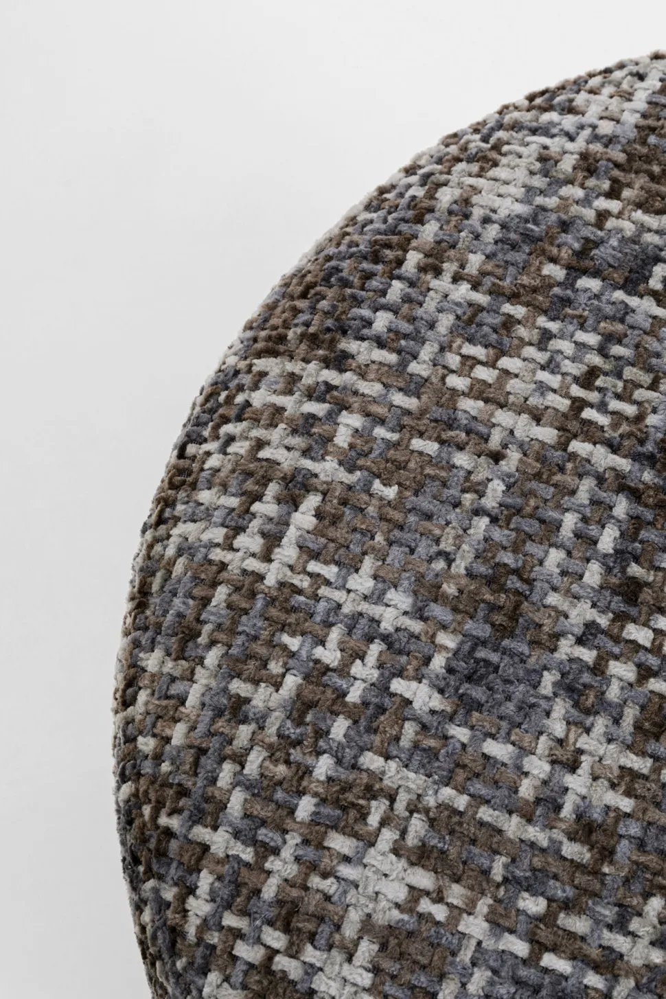 - Runder Polsterhocker in dunklem Grau mit silbernem Sockel, 47 x 39 x 39 Zentimeter (H/B/T)