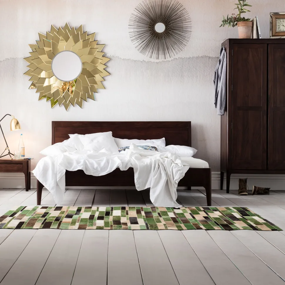 - Zeitlos schön: Der dunkle Farbton des Holzbetts, der wunderbar in jedes Interior passt