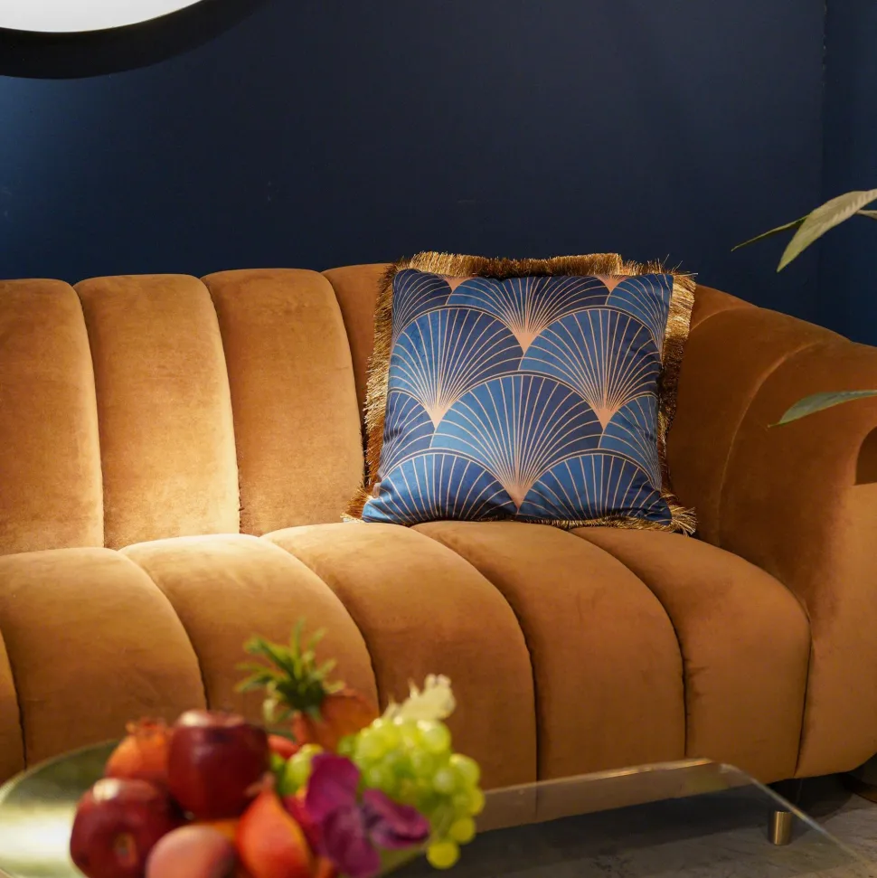 - Elegantes Deko-Kissen in Gold und Blau, 45 x 45 x 12 Zentimeter (H/B/T)