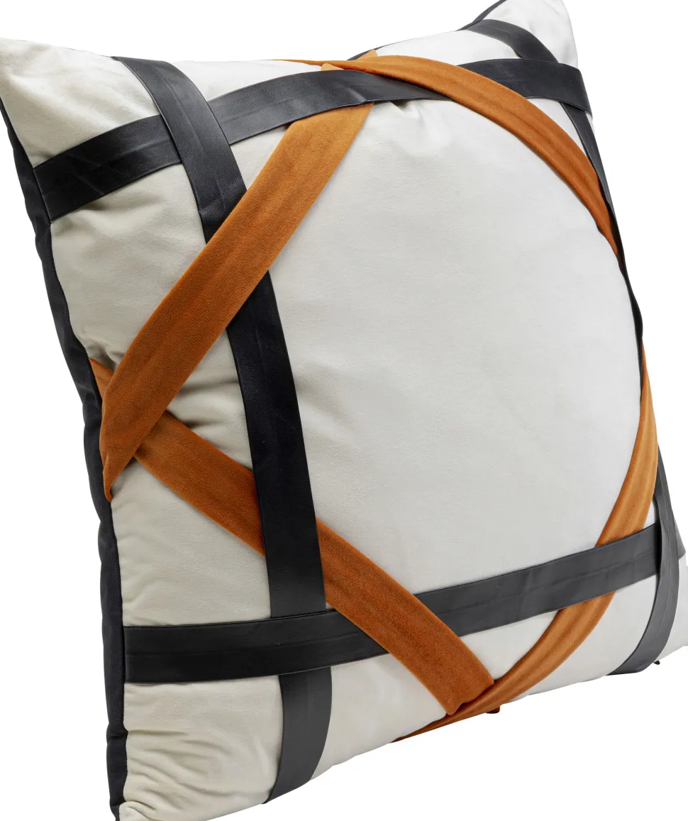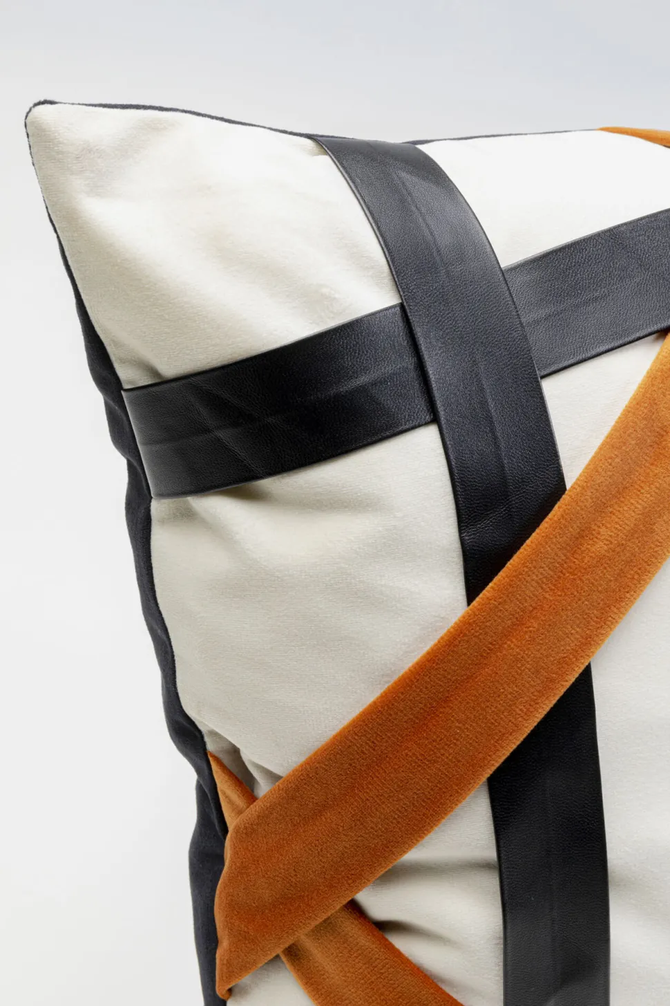 - Bänder in Leder- und Samtoptik machen das Sofa-Kissen zum Blickfang im Wohnzimmer