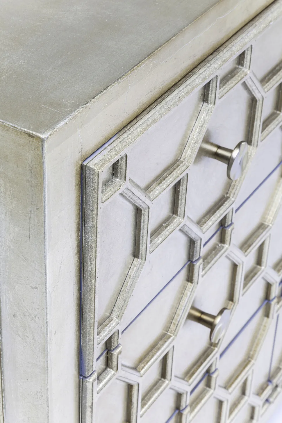 - Bildschöne Kommode mit verzierter Front, sechs Schubladen, lackiert in einem sanften, warmen Metallic-Ton