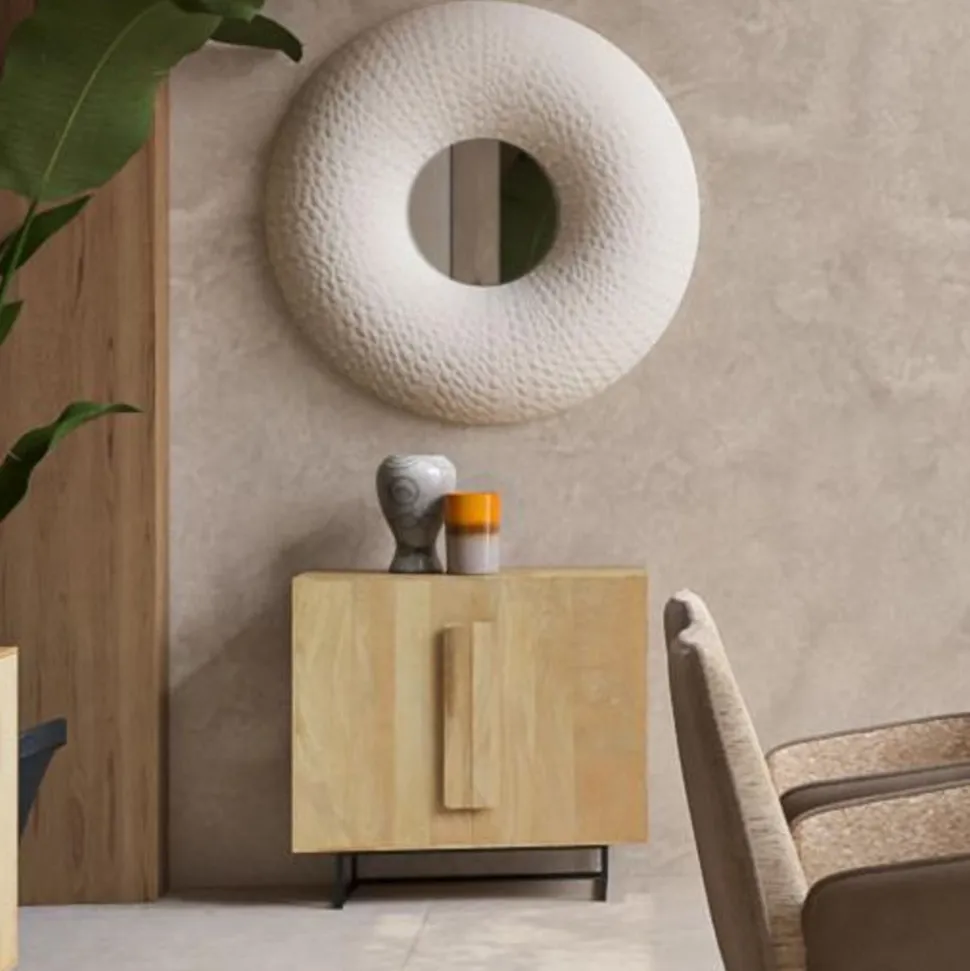 - Korpus und Fronten aus hellem, lackiertem Mango Massivholz, das durch Stabilität, seine charakteristische Maserung überzeugt