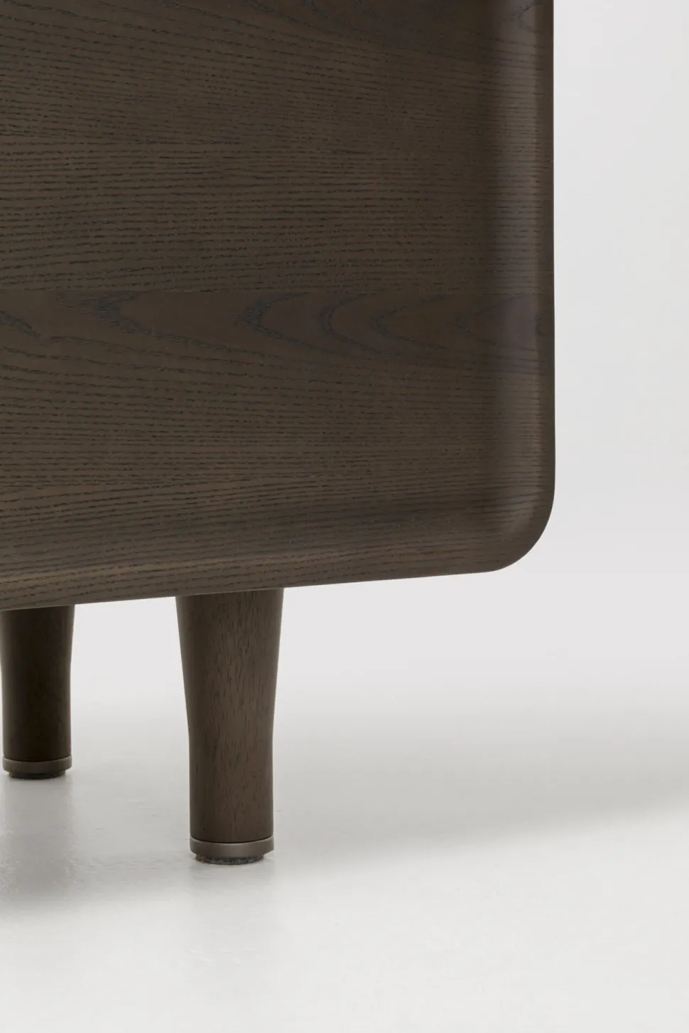 - Lackiertes Esche-Holz in einem dunklen Braun verleiht diesem Möbel eine warme Ausstrahlung