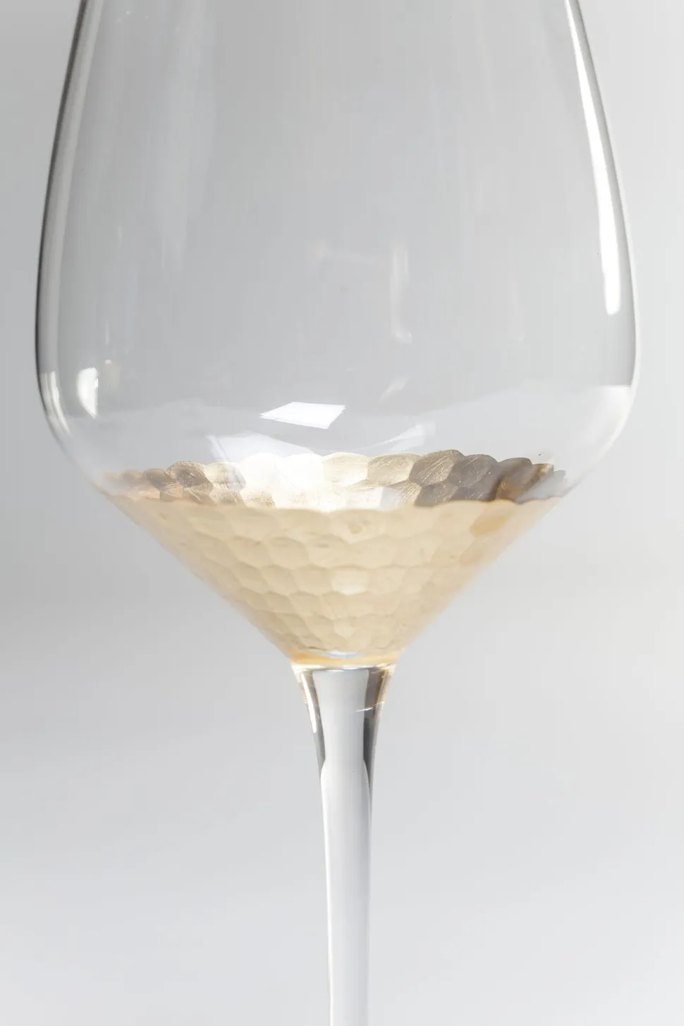- Feines Rotweinglas mit glamourösem Wabenmuster in Gold