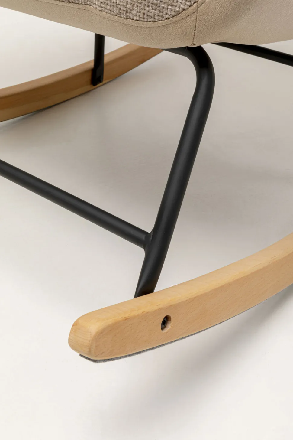 - Das schwarze Gestell mit Schaukelfunktion aus robustem Stahl mit Holzdetails erlaubt gemütliche Stunden