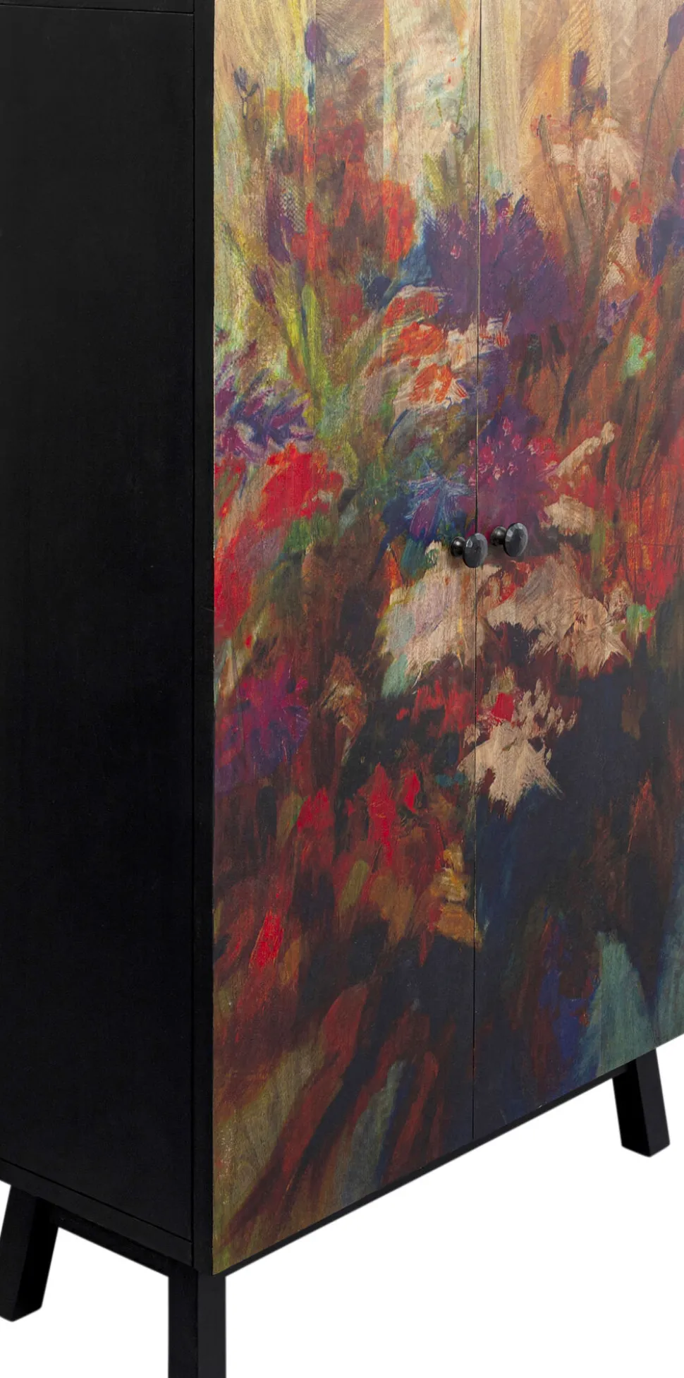 - Florale Motive und fantasievolle Pflanzenwelten verleihen dem Holzschrank eine poetische, fast träumerische Note