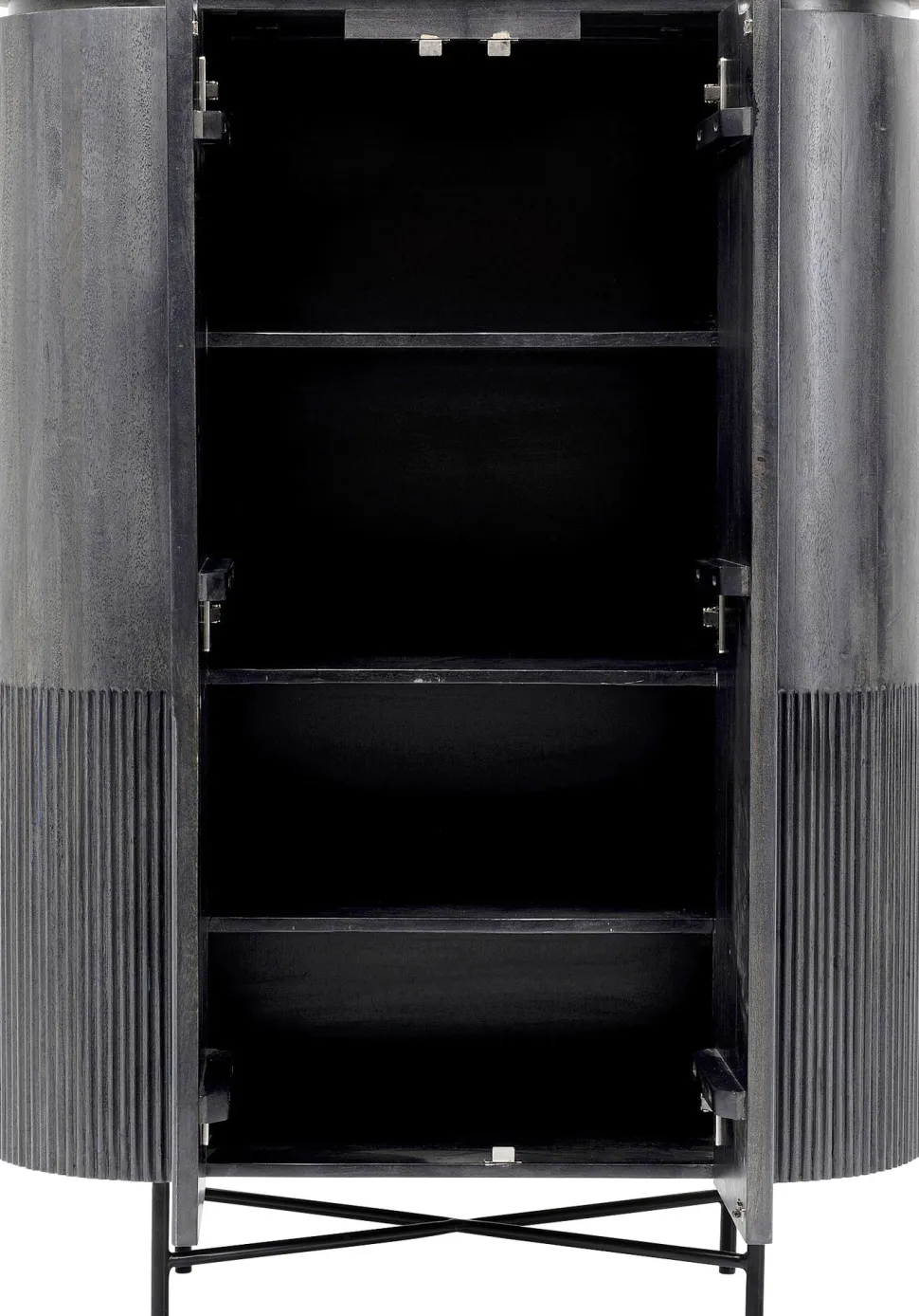 - Mit seiner ovalen Form und den vertikal strukturierten Fronten ein Meisterwerk an grafischem Möbeldesign und an Eleganz kaum zu überbieten