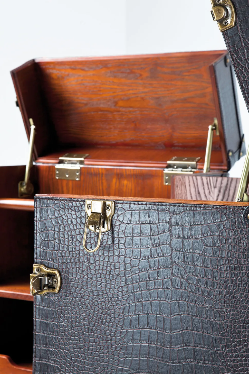 - Große Hausbar im Stil eines Schrankkoffers in Braun, 153x60x63cm (H/B/T)