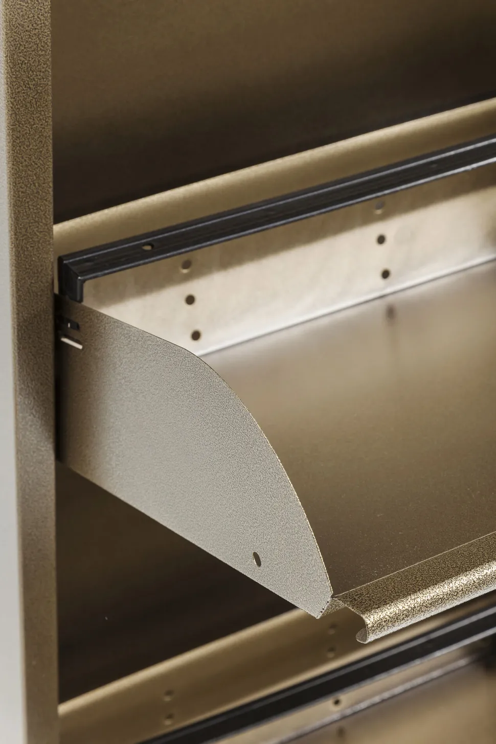 - Mittelhoher Schuhschrank in modernem Stahldesign mit drei Kippfächern für mindestens 6 Paar Schuhe, je nach Modell und Größe